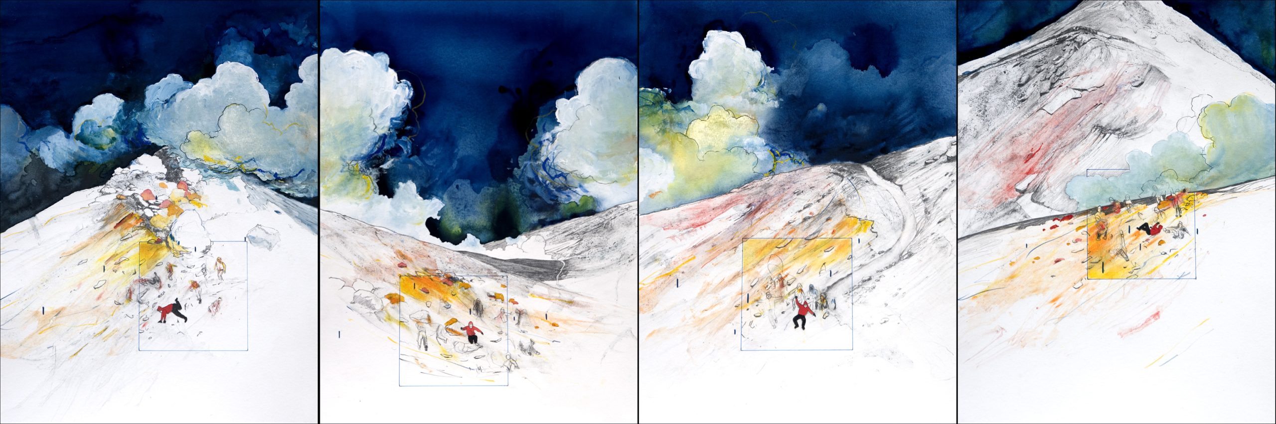 grafito, lápiz de color, pastel, tinta, acuarela y acrílico sobre papel. 40 x 30 cms. c/u. 2024